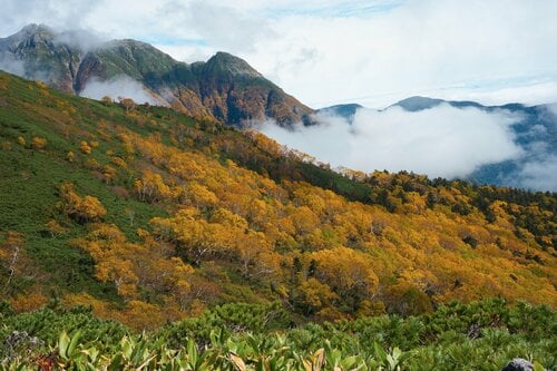 3,000m級の山々が連なる北アルプス。険しくも美しいその山容は登山者を魅了し続けている。標高も高いこの地域はひと足早く紅葉の見ごろを迎え、その姿は見事なまでに錦秋に彩られている。