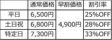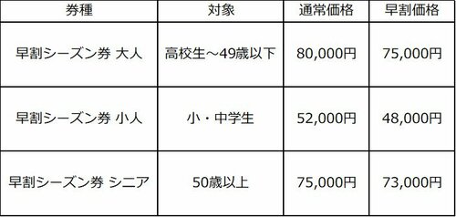 WEBでは早割リフト1日券と早割シーズン券も販売中です。早割リフト1日券は平日25%OFF、土日祝28%OFF、特定日33%OFFと大幅な割引となっています。