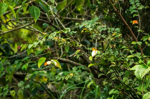 ツマベニチョウがヒラヒラと忙しなく飛んでいます。南国に多いこの蝶は、奄美ではとくに多いようで、滞在中に何度も見かけました。飛んでいる時は白と翅先の紅が鮮やかで目立ちますが、翅を閉じると葉っぱに見事に擬態しているようで、見失ってしまいそうです。