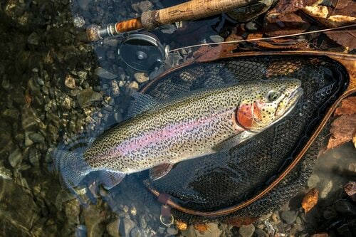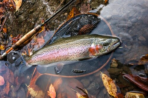 さて、ルアーマンが掛けた魚がポイントをかき回してくれたおかげで、ニジマスたちの気持ちもリセットしたようです。その後、すこぶる反応が良くなり、僕のロッドもふたたび曲がりました。先ほどの2匹よりサイズは小さいようで少し余裕があります。それでも慎重に、丁寧にやり取りをして無事にネットに導くことができました。