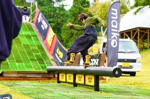 10月18日・19日の2日間、新潟県・舞子スノーリゾートで開催された「YUKIGOI OUTDOOR MARKET」。国内最大級のアウトドアマーケットイベントとして6年目を迎えたこのイベントで、今年も人気のジブバトル「SNOWSLAM」が開催されました。ジブとは、スノーボードで「レール」や「ボックス」といったアイテムを使って技を競う種目のこと。