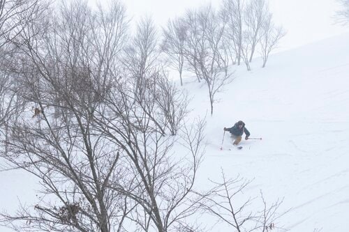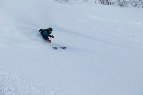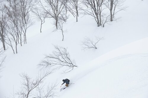 船石だけでも見渡す限りの未圧雪エリアが広がるので満足してしまいそうだ。しかしまだまだエリアは広がっている。船石のあとは、同じく未圧雪エリアのベンザクのツリーランを楽しむ。オープンな斜面だけでなく、ツリーランも豊富で色々な斜面へすぐにアクセスできるのが面白い。途中、気分転換に圧雪斜面のアンコールコースを滑るなど、気分によって様々なコースを選べる。