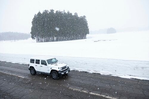 視界も奪われるような大雪が降っていてもラングラーなら、世界最高峰の4×4性能を開発するため、世界一過酷と呼ばれる独自の性能試験にパスしたモデルに与えられる「Trail Rated®」の称号が与えられているからどのような道でも安心感がある。