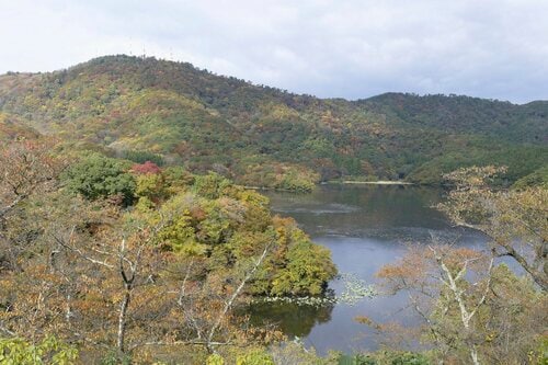 山形県鶴岡市にある高館山(273.3m)と八森山(229m)もそのひとつ。江戸時代から森林の伐採が制限されていたため、ブナやケヤキなどの自然林が豊かに広がっています。そのため秋になると赤や黄色に鮮やかに色づくのです。その頃、麓の大山上池・下池には、多くの水鳥が飛来し羽を休めます。