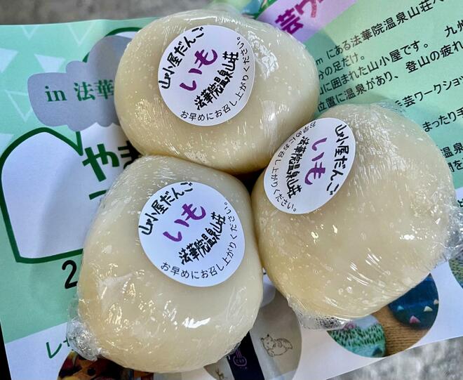 法華院温泉山荘でおすすめなのが「山小屋だんご」だ。餡は芋と小豆の2種類で1つ250円(2025年2月時点)。