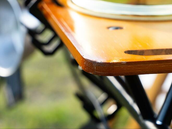 2年の使用で驚いたのは、想像以上にタフであるという点だ。スチール製のフレームはしっかりとした作りで、ぐらつきや変形はほとんど見られない。天板の表面も大きな反りや割れはなく、クッカーやランタンなどを置いても問題はない。