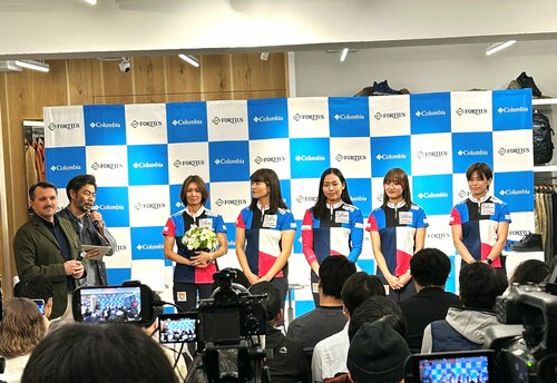発表会は、コロンビアスポーツウェアジャパン代表のマッスィモ ラッザリ氏の挨拶に始まり、なんと昨日海外遠征から帰国したばかりだというフォルティウスメンバーの登場に会場は大盛りあがり。ユニフォーム姿の彼女たちの華やかさに加え、トークショーではフォルティウスモデルの開発秘話やコロンビアとフォルティウスのこれまでの歩みなど話題は多岐にわたりました。また、MCを務めたマーケティング部 衛藤氏とのトークセッションでは、競技の話や遠征エピソードなどで笑いも交え、あっという間に時間が過ぎていきました。