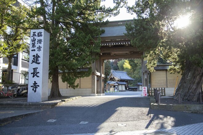 しばらくすると建長寺の外門が見えてくる。早速奥へと進み拝観料を納めたら、まずは国重要文化財に指定される迫力のある三門や、荘厳な仏殿を見学しながらお参りをしよう。