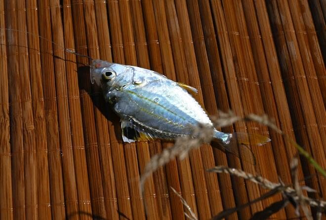 友人の竿が小さく弧を描く。 水面から現れたのは、透き通るような淡い金色の体を光らせるマハゼ。