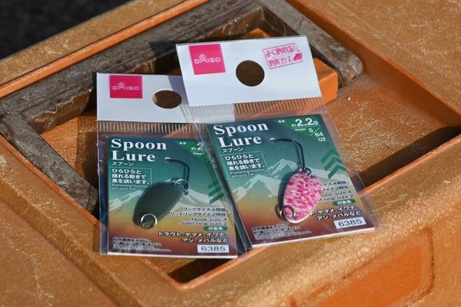 今年は複雑な仕掛けを封印し、できるだけシンプルに釣りたいと思った。手に取ったのは、DAISO(以下、ダイソー)の釣り具コーナーで見つけた「スプーン2.2g」の小さな金属ルアーだ。両面マット塗装の落ち着いた色合いが、秋の午後の日差しにしっくりと馴染んでいる。