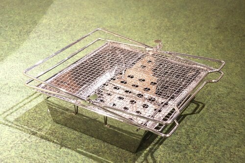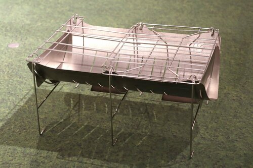 こちらのモデルにも網やグリルが付属しているので、食材をのせて調理ができます。網は約5kg、グリルは約3kgの耐荷重なので、軽めのクッカーならのせても大丈夫です。片付けるときは細かく分解できるので、持ち運ぶときも問題なしです。