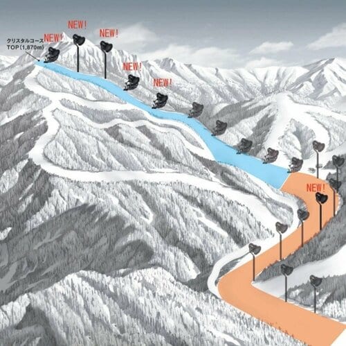 従来、クリスタルコース上部には人工降雪設備がなかったため、シーズンはじめは桜川コースと白鳥ダウンヒルコースのみのオープンが通例でした。天然雪が降らない限りクリスタルコースを開放できない状況でしたが、今回の設備投資により天然雪に頼らないコース造成が可能になります。