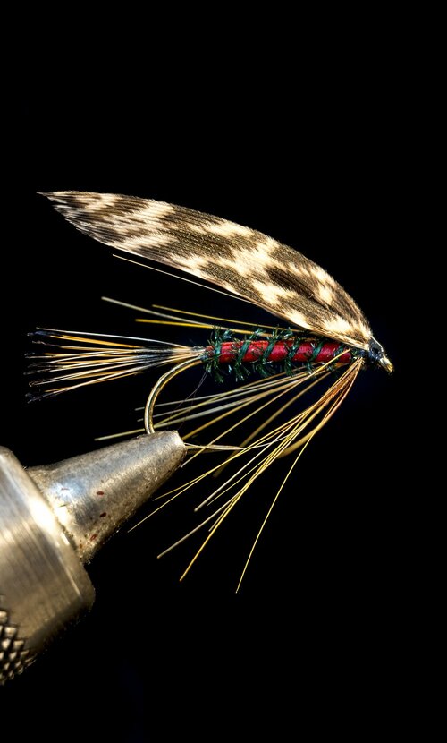スイングさせたフライにゴツゴツとした感触がありました。結んでいたのは、“ハーディーズ・フェイバリット”。アトラクター的なものやニンフを中心にフライボックスに入れていたのですが、お守り代わりに片隅でくすぶっていた定番ウェットフライです。