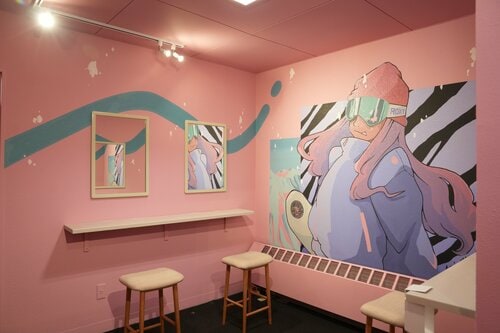 また、7階にある女子専用パウダールームには、イラストレーターのAMI OTSUKAが手がけた華やかな壁面アートを展開。このほか、地元のおみやげが揃った「スーベニアストア ファンシー」も大幅改装が行われ、スキー場オリジナルのアパレルを拡充するなど、ここならではのアイテムが揃った賑やかなショップへとリニューアル。