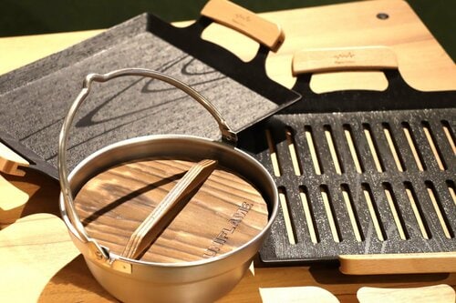 「では、そんな焚き火の強い炎にも負けない、しっかりとした作りのものをご紹介しましょう」と加藤さん。幅広い料理に使える鍋と、新作のグリドルを挙げていただきました。