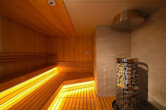 高尾山口駅から徒歩2分の甲州街道沿いにあり、登山帰りに立ち寄るのにちょうどよい立地だ。ヒノキの香りでリラックスしながら汗を流せるメインのサウナルーム「fukurou」と、ガラス窓越しに高尾山の山並みの風景とセルフロウリュが楽しめる「kawasemi」の2つのサウナを楽しみつつ、水風呂や外気浴で「ととのう」は最高の体験だ。