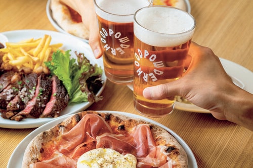 エースゴンドラ山頂駅の「NEST813」と山麓駅付近の「POWDERHOOD RESTAURANT&TAPROOM」が今季オープンし、ゲレンデ内のレストランは5店舗に。「POWDERHOOD RESTAURANT&TAPROOM」はブリュワリー併設で自家製クラフトビールが味わえる。