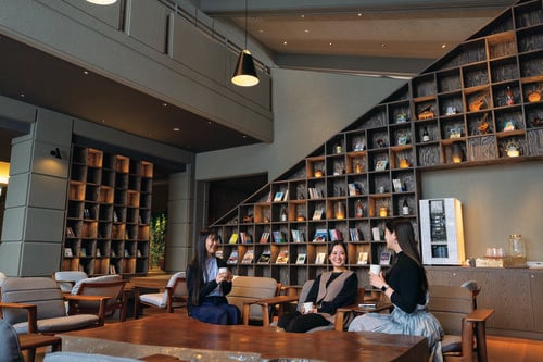 「Onsen&Lounge MONE -木音の湯-」は、源泉かけ流しの温泉にサウナ、アルコールを含むドリンクバーにコワーキングスペース、小さな子どもも楽しめるボールプールなどがあるキッズルームまで完備。約6000冊の書籍から好きな本を選びのんびりと。日頃の疲れを癒やせる贅沢空間だ。