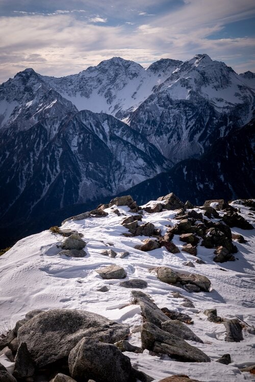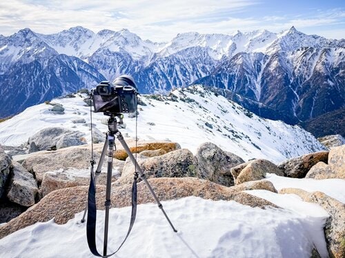稜線に出ると、シャッターを切りたい瞬間が何度も訪れる。今回の山行に連れて行ったのが「AOKAミニ三脚カーボンロングタイプ3段CMP163CL+KB20」だ。突然だが、これがとても良くて登山ギアの一軍になったのでご紹介したい。