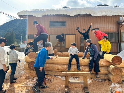 雪が溶けはじめる頃、テラスに階段をつけ、かまど用のログ東屋の作業を進める。気づけば、毎日、木と土と火にまみれている。ああ、これは完全に「村づくり」だな、と思った。なんだか『北の国から』の住人になった気分だった。