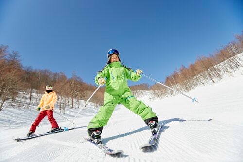 キッズパークで雪に慣れ、コースデビューを目指すならスキー・スノーボードスクールの利用もおすすめ。スキーは5歳以上、スノーボードは4歳以上が対象と、未就学児でもレッスンを受けられる。