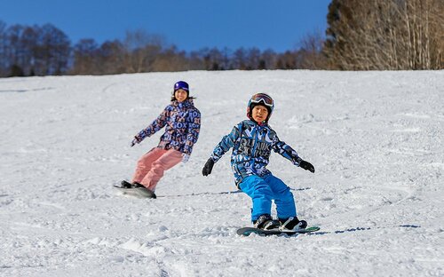 スノーボードスクールでは、中学生以上を対象とするベーシックな「常設レッスン」をはじめ、4~7歳の未就学児が対象の「キッズレッスン」や、小学1〜6年生が対象の「ジュニアレッスン」などの子ども向けのプログラムも用意されている。