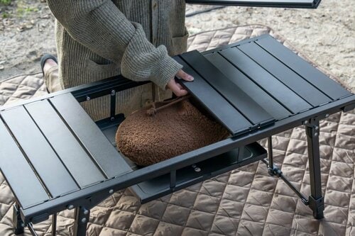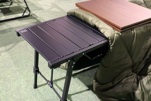「こたつユニット88」は、もともと同ブランドの「アルミユニットテーブル88」のオプションとして発売されたものです。「『アルミユニットテーブル88』を使うと、中央のラック部分にお手持ちの湯たんぽをセットすることができます」(加藤さん)。まさに、“こたつスタイル”になりますね。