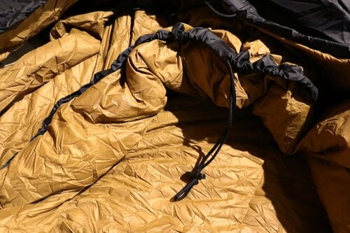 「オリジナルオーロラ」のダウンはふかふかで暖かく、サイズ的にもゆとりがあって、寝るときにも窮屈感はありません。「首の部分にはドローコードが付いていますので、首元から冷気が入ってこないように絞ることができます」(加藤さん)