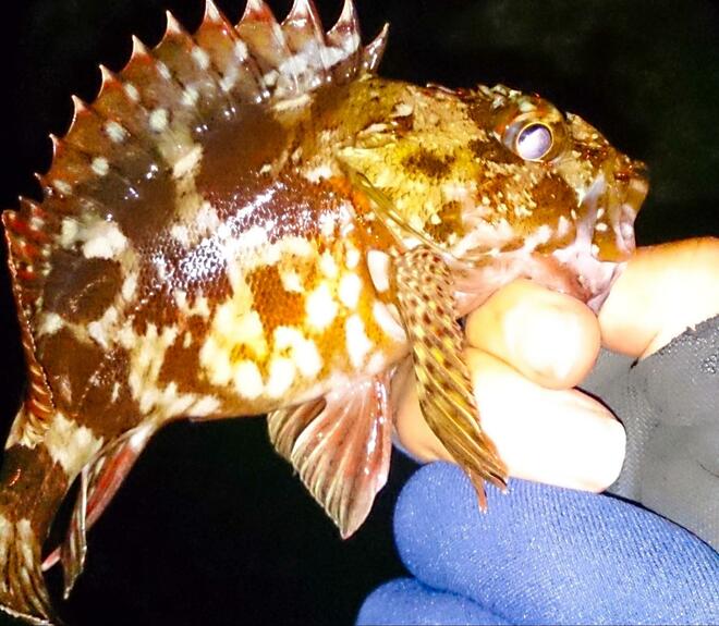 カサゴは1年を通じて釣れる魚ではあるが、水温が下がる冬でも、ショア(岸)から狙える貴重なターゲットだ。日中は岩陰や穴の中に身を潜め、夜になると活発に動きだす習性を持つ。縄張りの中で生活しているため行動範囲が狭く、狙うべきポイントが絞りやすい。結果、初心者でも釣果につながりやすいといえる。