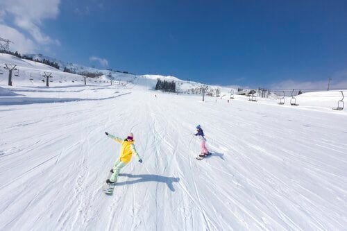 スノーボードスクールは、レベルに合わせたグループによるレッスンは小学4年生から、希望した人数や内容で受講できるプライベートレッスンは小学生から受講できる。