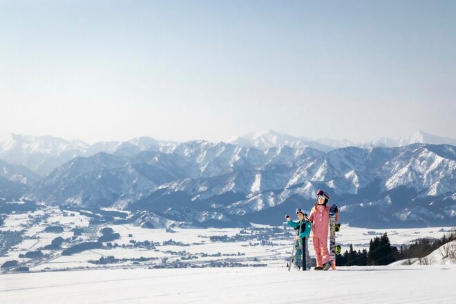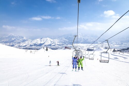 このスキー場の自慢は、越後三山と南魚沼市を一望できるロケーション。最大幅200mのワイドコースでは、この絶景を眺めながら心地よい滑走を味わえる。12コースのほとんどが初級~中級向けの斜面で構成されているので、ビギナー&ファミリーも過ごしやすい環境だ。また、最長滑走距離2,812mと十分の滑り応えがある。