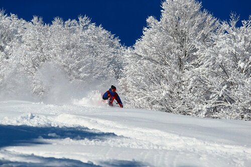 眺望抜群の全5コースのうち、初級者は全長5,000mの「長峰ランランコース」へ。適度な斜度があるから、滑るたびに上達するのを実感できるはず。スノーボーダーにも人気が高く、圧雪バーン、パウダー、コブ斜面と、多彩な滑りを満喫しましょう。
