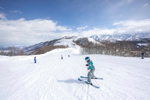 雪遊びを卒業したキッズをランクアップさせるステージも万全です。スキーとスノーボード、それぞれにキッズ専門スクールがあり、未就学児からOK。専用エリアに設置されたアイテムで遊びながらスキルが身につき、安全・安心で確実に上達できると評判です。