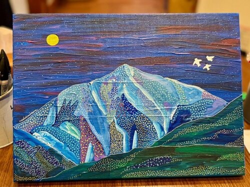 以前は、海外旅行先で出会った風景を描くことが多かったと言いますが、山登りを始めたことで制作のモチーフは一変。自宅のすぐ近くにありながら、日常とはまったく違う表情を見せる山の景色や空気に強く惹かれ、山を題材にした作品が増えていきました。