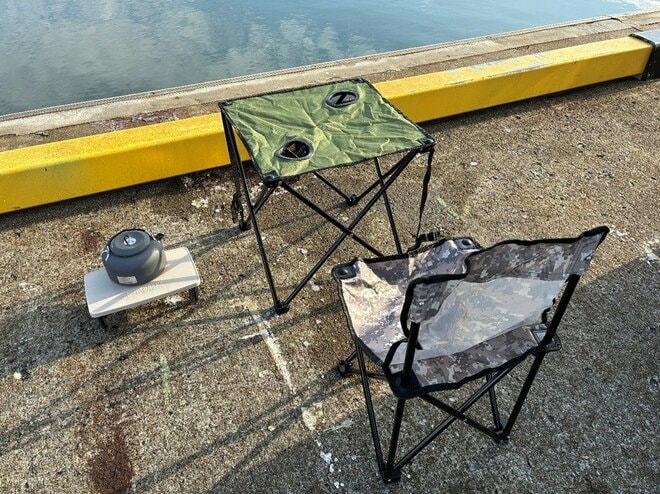 アジ釣りは、次の地合いが来るまでの待ち時間が長い。だが、ミニコンロとマグカップを持参すれば、すぐにお湯を沸かして温かい飲み物が楽しめる。その時間を“退屈”ではなく“楽しみ”に変えよう。この日、筆者は持参したカップスープとインスタントコーヒーで小休止。湯気が立ち上るスープやコーヒーと共に、海を眺めながら過ごす時間は、まるで静かな海辺でのカフェのよう。釣りと小さなアウトドアを組み合わせることで、何気ない時間が豊かな体験に変わるのだ。