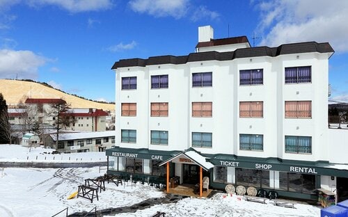 パウダーの聖地として有名な斑尾高原スキー場にある、三角屋根がトレードマークの「斑尾高原ホテル」。まさに、斑尾高原のシンボル的な存在で、パウダーを狙い撃ちするのにぴったりなリゾートホテルです。