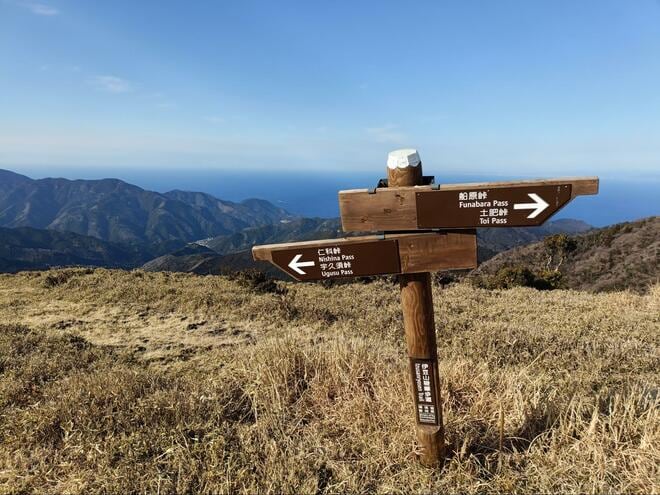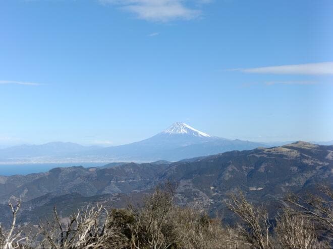 その途中に位置する「魂ノ山(こんのやま・933m)」は、稜線上にあるピークの一つで、富士山と駿河湾の大パノラマが広がる開放的な山頂が魅力。伊豆らしい温暖な気候と植生、そして冬でも雪の心配が少ない環境から、2月の早春登山にも最適なスポットで、静かな自然と絶景が調和した、知る人ぞ知る穴場だ。