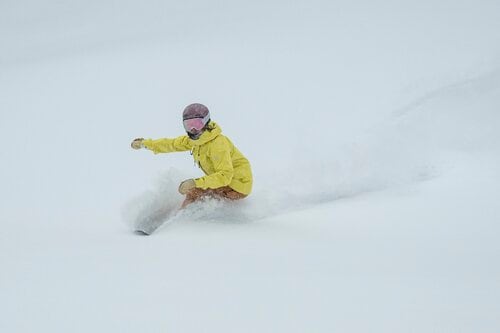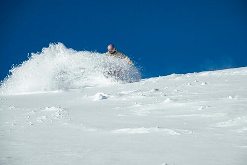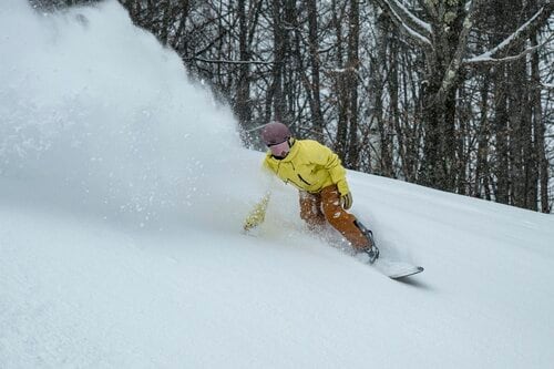 今回の旅では初日は終日雪、翌日が晴天というロケーションだったため、幸運なことに両日ともにここでパウダースノーを満喫できた。とくに2日目は積もったパウダー狙いのスキーヤー・スノーボーダーが山頂エリアに集まっており、あちこちで歓喜の声が聞こえてくる。にもかかわらず、コースが広いため何本滑ってもまっさらなたくさんパウダーが残っていた。