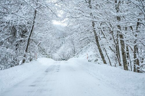 雪のコンディションがいいときほど大変な道のり。狭く曲がりくねった道、アップダウンで見通しの悪い箇所も多いので慎重な運転で下っていきます。