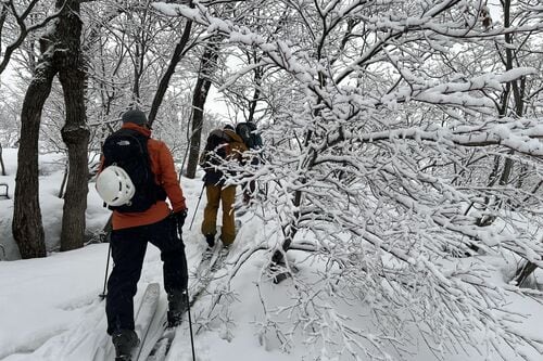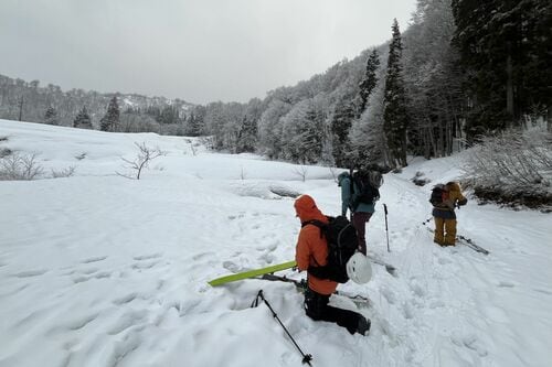 筆者が参加したのは、経験豊かなガイドによるバックカントリーツアーです。スキーヤー計4名のパーティーで入山します。