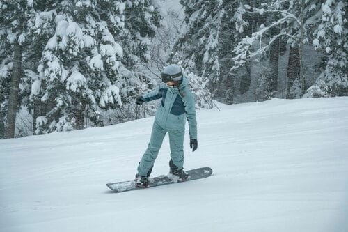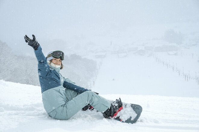 ハクノリのコース数は14本。幅広のワイドバーンもあるので、スキー・スノーボードビギナーだって安心だ。山麓のホテルの目の前からリフトに乗って滑り出せるので、移動が楽ちんなのもありがたい。まず1本目は足慣らしとして、「若栗林間コース」を滑ってみる。針葉樹林に囲まれたこのコースは、平均斜度8度のやさしい斜面。この日は雪が降っていたので、雪が積もった木々がクリスマスツリーのようでその雰囲気もいい。