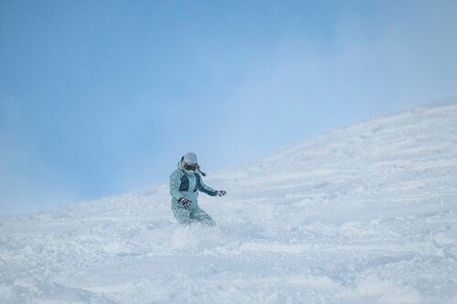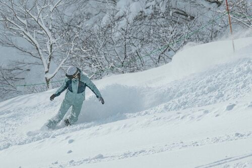 アルプス第3ペアリフト山頂から滑り出す「ハイウェイコース」は、滑り出しは斜度があるものの、途中から左手に進むとやや斜度がゆるんでくる。幅のあるバーンは一面がふかふかの新雪で、「これは行くしかない!」と飛び込んだ。ハクノリ自慢のサラサラの雪を味わううちに、「パウダーって楽しい」とどんどん滑るのが楽しくなっていく。
