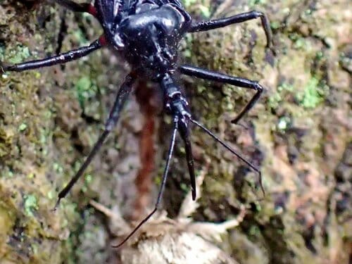 カメムシというと「農業害虫」のイメージが強く、果物や野菜につくイメージがある。ところが、サシガメは”肉食性のカメムシ”だ。その鋭い口器で獲物を突き刺し、その体液を吸う習性を持つ。