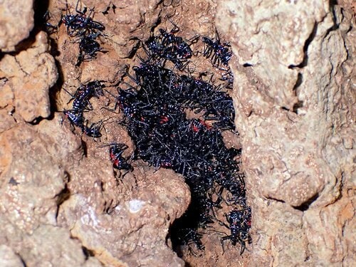 ヨコヅナサシガメは、特に冬に見つけやすい。その理由は、サクラやエノキなどの”身近な樹木で集団越冬するため”だ。