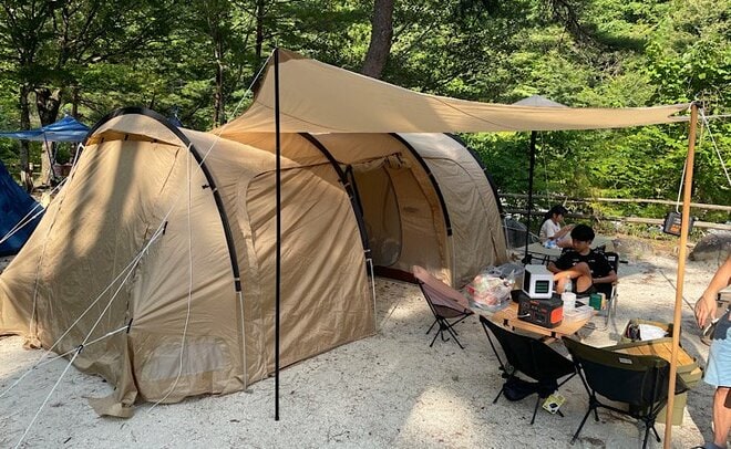 夏以外の季節は、寒暖差の影響でテントやタープに結露が発生する。びしょ濡れのまま畳んでしまうとすぐカビが生えてしまうし、かといって自然乾燥を待っているとチェックアウトに間に合わない。