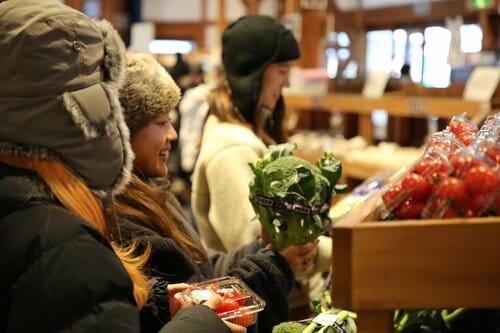 まず最初に目指したのは、村のおいしいものや遊びが詰まった「川場田園プラザ」。さまざまな道の駅ランキングで1位を獲得し、『じゃらん』が発表している「全国道の駅グランプリ2025」でもこの道の駅が1位に輝いている。広い敷地に内には古民家のような施設が点在し、まるで里山のような雰囲気。「ファーマーズマーケット」には地場産の野菜やフルーツがずらりと並び、冬はいちごが人気を集める。また、幻のコシヒカリといわれる「雪ほたか」も川場村の名産品だ。