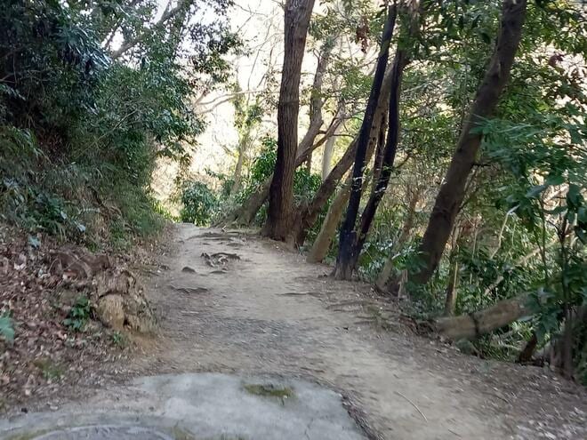 自然林に囲まれた道は道幅も広く歩きやすい。また、所々にベンチや東屋が設けられており、ゆっくりとしたペースで登れるのが魅力である。