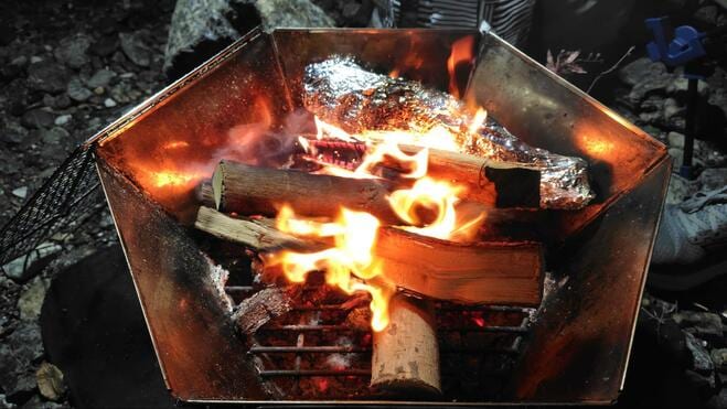筆者はもともとヘキサステンレスファイアグリルを調理用として、焚き火台は別に用意していた。しかし、今ではその扱いやすさから、本商品を焚き火台としても使っている。