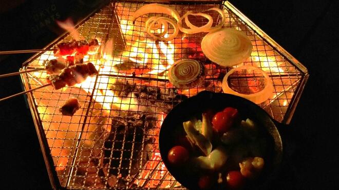 また、本体に直接ダッチオーブンを入れて炭で囲めば、煮込み料理なども簡単にできる。すでにダッチオーブンを持っている方や、なるべく手軽に様々なキャンプ料理にチャレンジしてみたい方にはぜひともおすすめしたい組み合わせである。