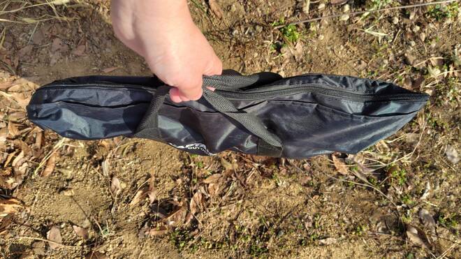 特徴的な六角形の形から組み立てが難しそうに思えるが、実際は非常に簡単で、パタパタと折り畳まれた本体を広げてスタンドに差し込み、底板と目皿、網を順にセットすれば完成する。組み立てが簡単ということは、つまり片付けも楽ということだ。部品は5つのみで、付属の袋に収納するとスリムに収まるため、他のギアを圧迫しない。